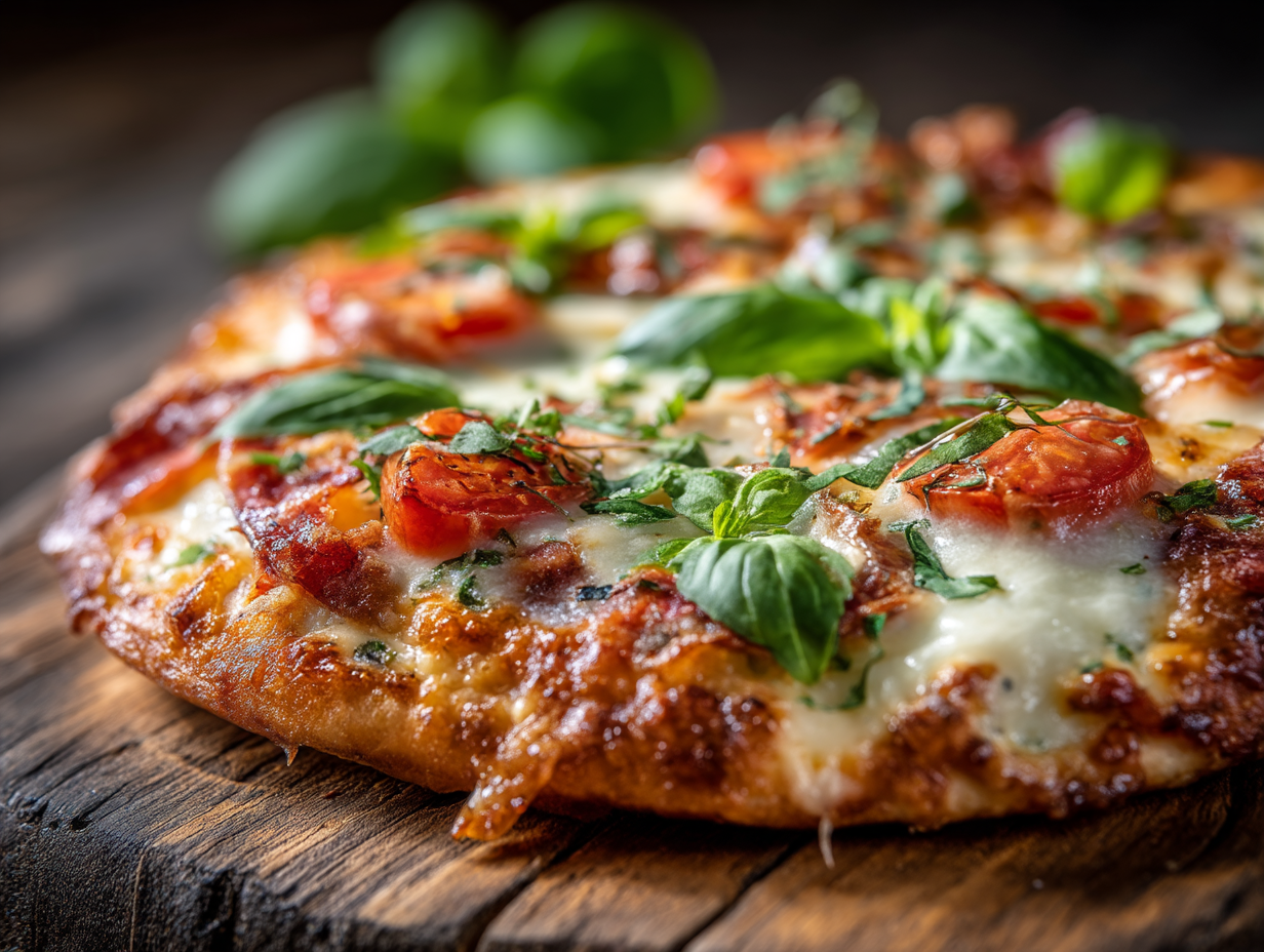/imagine prompt: Delicious pizza on wooden table, melting cheese, fresh basil, natural daylight, food photography, appetizing, shot on Canon 5D Mark IV 50mm f/1.8, ultra detailed, vibrant colors --ar 4:3 --style raw --q 2 --v 7